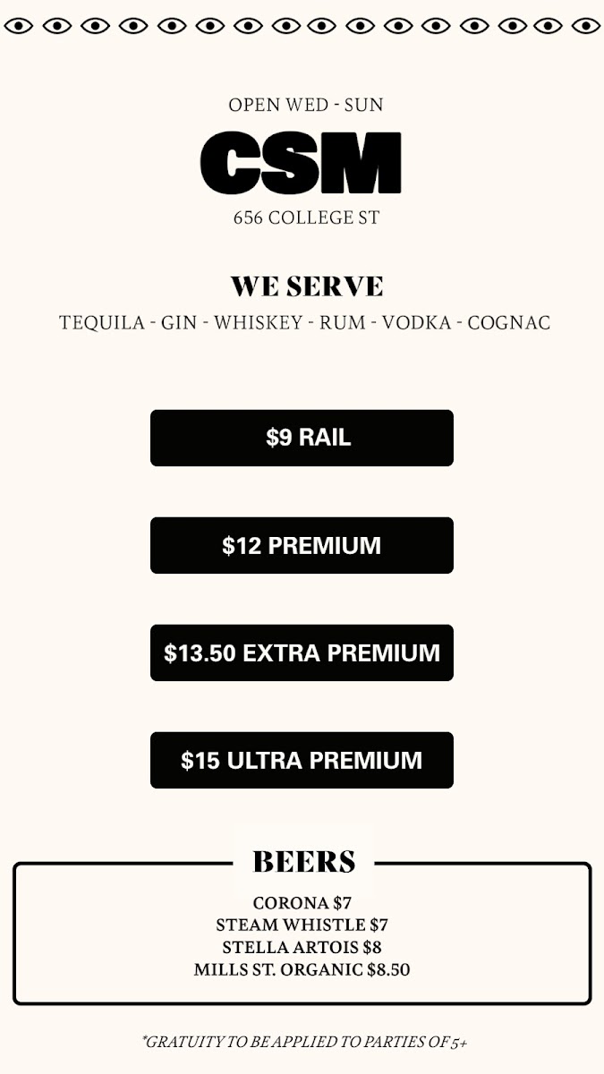 Welcome to Come See Me, a vibrant spot located at 656 College St, Toronto, where culinary delights meet an electrifying atmosphere. This eclectic eatery offers a menu that appeals to diverse tastes, making it perfect for both casual hangouts and lively celebrations.